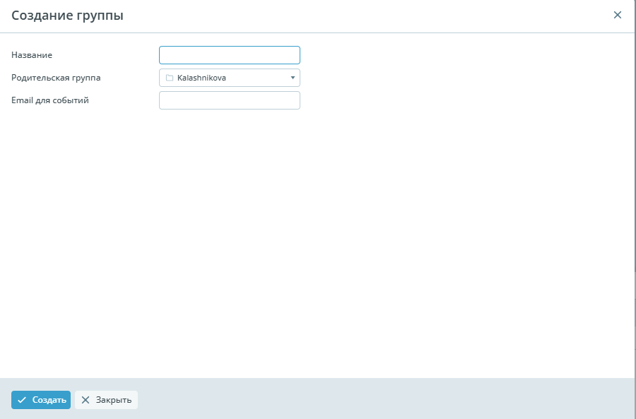 - Родительская группа - группа, к которой будет относиться данная группа;
