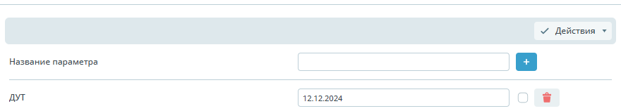 | Пользовательские | ![]() | Вкладка предназначена для добавления произвольных параметров, описывающих объект. По умолчанию во вкладке "Пользовательские" нет параметров. Для добавления параметра вводится текст в поле Название параметра. После создания параметра, в свободное поле напротив, задается дополнительная информация. Флажок слева, отвечает за отображение информации под деревом объектов. Значок корзины, справа от созданного параметра, позволяет его удалить. Кнопка Действия позволяет копировать уже созданные параметры в другой объект. |