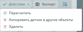 | Действия | ![]() | Кнопка, позволяющая произвести манипуляции с датчиками. |