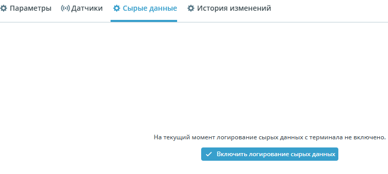 Для отображения данных необходимо нажать кнопку Включить логирование сырых данных.