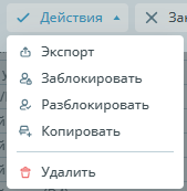 | Действия | ![]() | Кнопка действия открывает дополнительное меню: ![]()