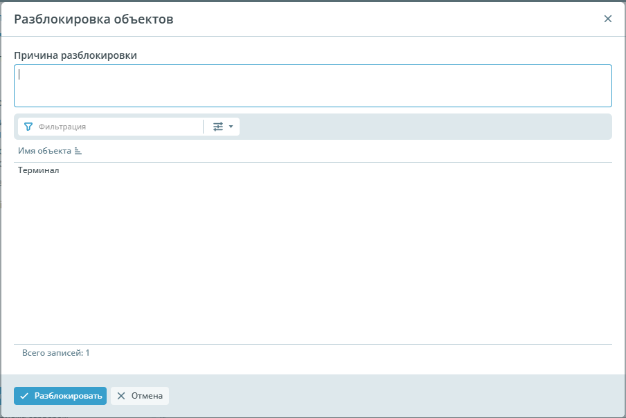 | Фильтрация | ![]() | Настройка фильтрации позволяет выбрать параметры по который можно отфильтровать данные. По умолчанию отображаются все данные. |